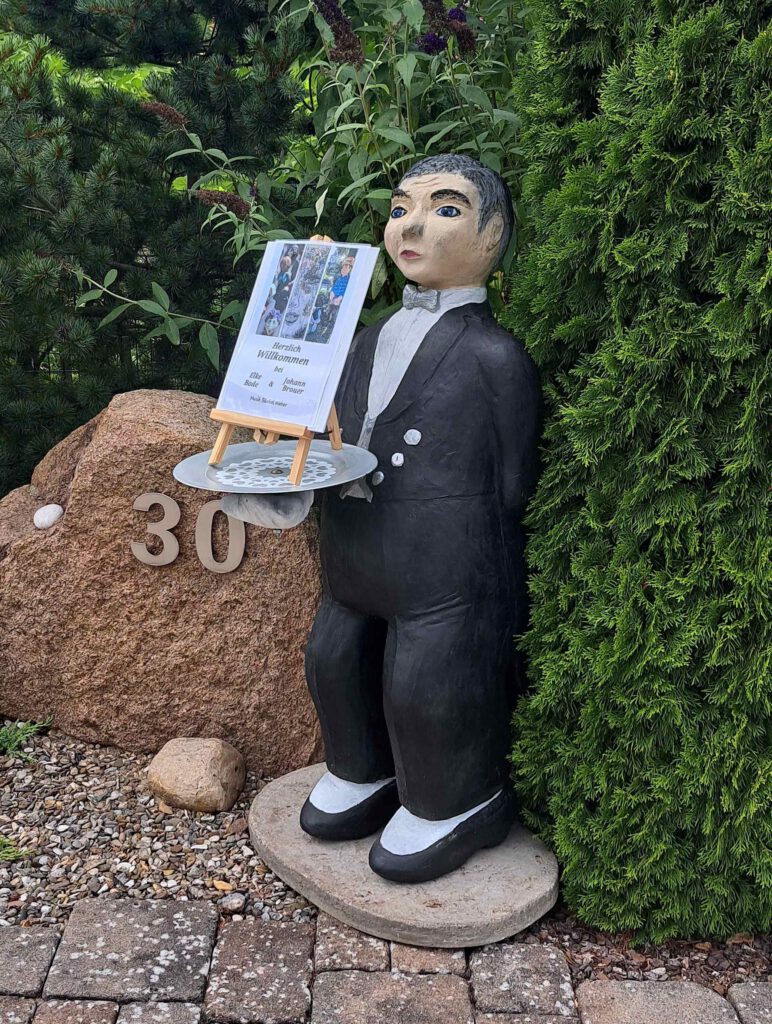 Wir sind ein kreatives Paar und verbringen unser Rentnerdasein mit gestalten von Betonfiguren, vom Butler ( ca 130 cm), Alpaca auf dem man sitzen kann( ca 120 cm), Erdmännchen kleine Kühe oder Figuren aus Altglaskörper. Elkes 2. Leidenschaft ist das malen. So entstehen Bilder aus acryl, aquarell oder multi media mixed. Ihre größten Werke gängen in der Stankt Petry Kirche in Hötzum ( Sickte).